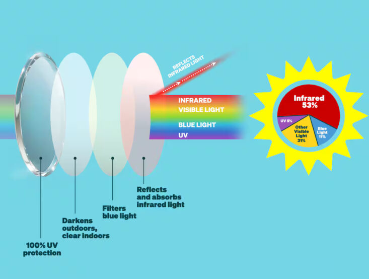 Most lenses on the market only address UV and sometimes blue light. EyeQLenz with Zenni ID Guard goes further—its anti-infrared coating blocks up to 80% of NIR rays, while also delivering the familiar protection of UV blocking, blue light filtering, and adaptive photochromic technology. That means less strain, clearer focus, and broader protection compared to standard lenses.